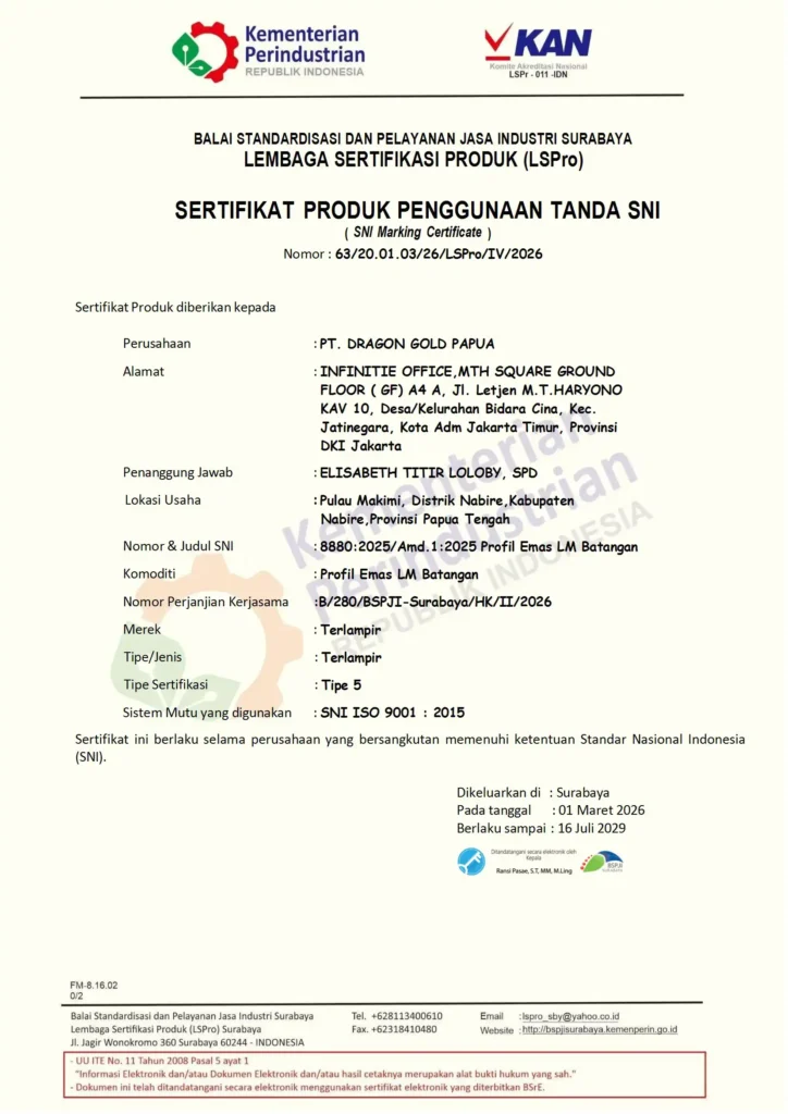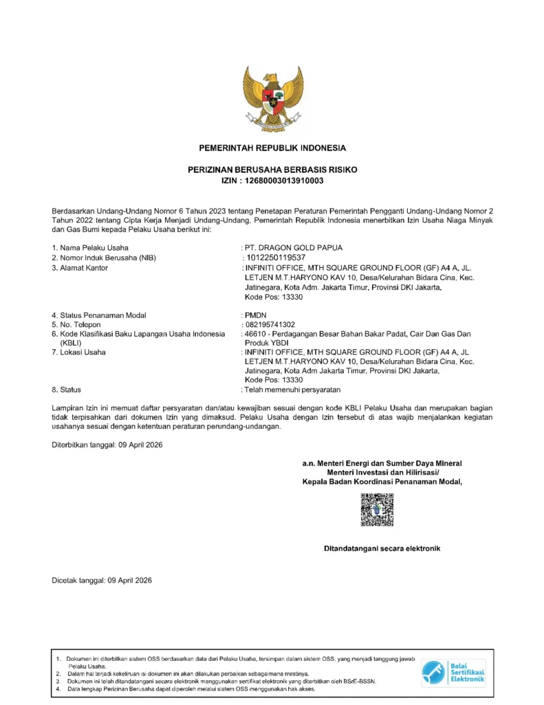 PT. Dragon Gold Papua merupakan perusahaan yang bergerak di berbagai sektor strategis, mulai dari pertambangan emas, perak, nikel, timah, hingga logam mulia lainnya. Perusahaan juga mendukung pembangunan infrastruktur melalui layanan pengeboran sumur air tanah, instalasi sinyal dan rambu jalan, serta penyediaan barang logam untuk konstruksi. Selain itu, perusahaan memperkuat rantai pasok industri melalui kegiatan pembuatan logam dasar mulia serta produksi sabun dan bahan pembersih.